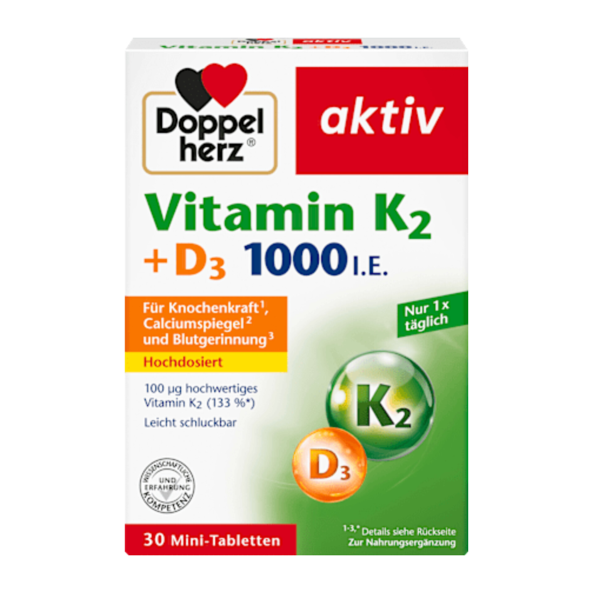 قرص ویتامین D3+K2-۱۰۰۰ دوپل هرز-Doppel herz-آلمان-۳۰ عدد