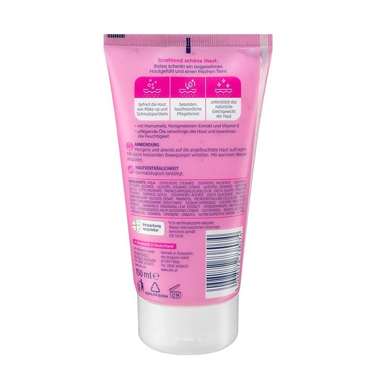 کرم پاک کننده ملایم Balea به آرامی و به سرعت آرایش و ذرات محافظ را از روی پوست پاک میکند. این کرم حس خوشایندی به پوست میدهد و چهرهای شاداب به جا میگذارد. به لطف فرمولاسیون ویژه آن با روغن بادام مغذی، پوست را نرم و لطیف میکند و خاصیت مرطوبکنندگی دارد. علاوه بر این، فرمول گیاهی آن فاقد میکروپلاستیک است.