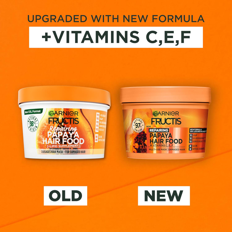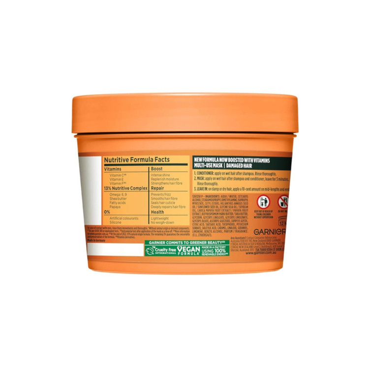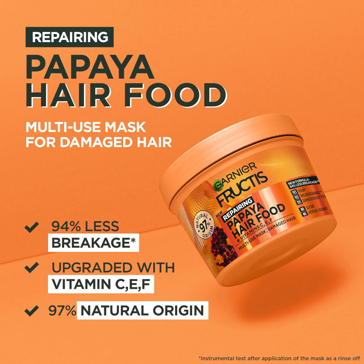 ماسک موی فروکتیس پاپایا ترمیم کننده و مغذی قوی موهای آسیب دیده میباشد.