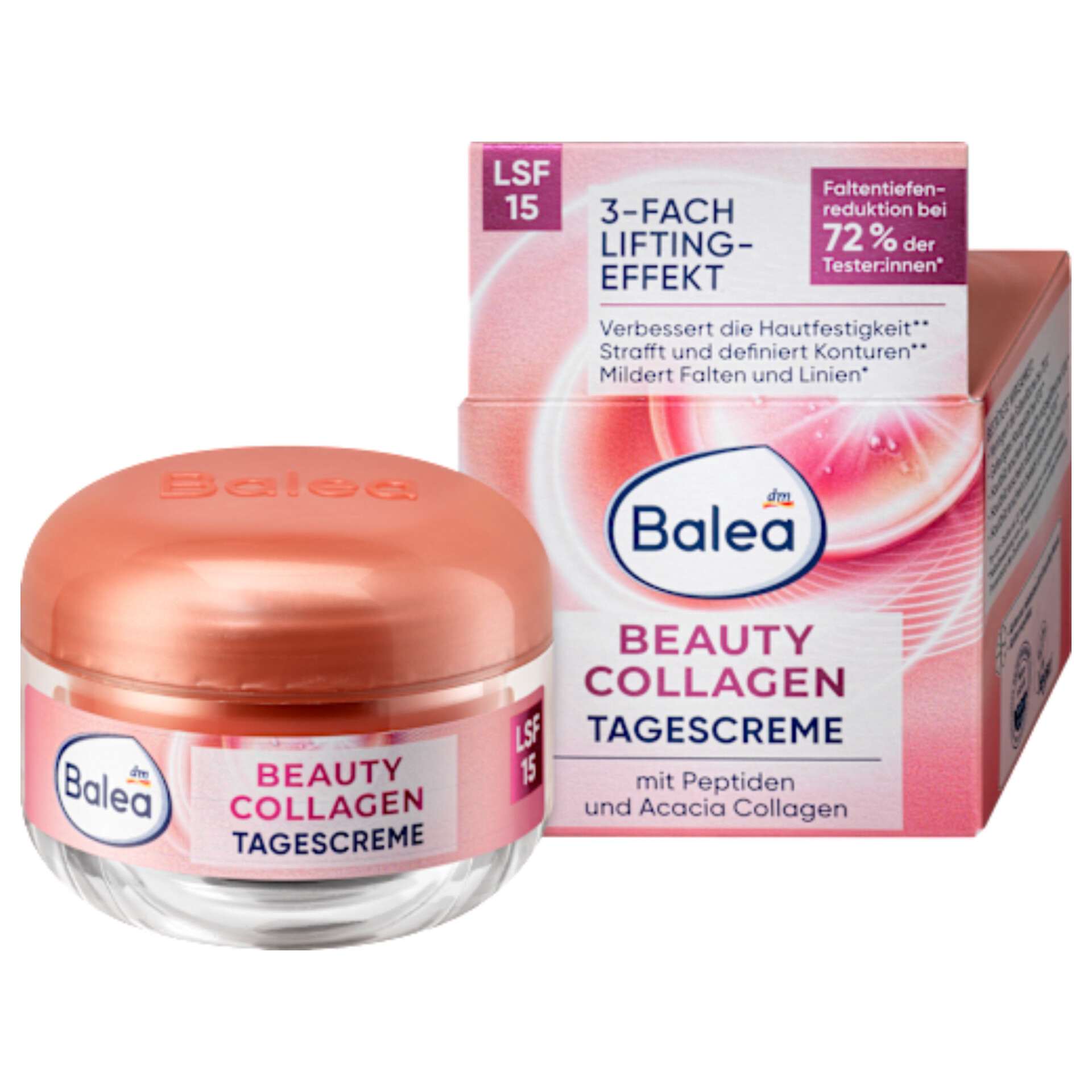 کرم روز کلاژن Balea Beauty با SPF 15 از ساختار پوست پشتیبانی میکند و با تخریب کلاژن مقابله میکند. با ترکیبی نوآورانه از مواد فعال، از جمله یک عامل لیفتینگ گیاهی و کلاژن اقاقیا، اثر سفتکنندگی قابل توجهی را ارائه میدهد. خطوط و چین و چروکها کاهش مییابند**، در حالی که سد پوستی محافظت شده و به شدت مرطوب میشود. پپتیدها میتوانند تولید کلاژن خود پوست را افزایش داده و خاصیت ارتجاعی آن را بهبود بخشند. برای داشتن چهرهای تقویتشده و جوانتر که در تمام طول روز درخشان است. **ارزیابی شخصی توسط ۳۳ آزمایشکننده پس از ۴ هفته استفاده. فرمول فاقد میکروپلاستیک و پلیمرهای کاملاً مصنوعی محلول در آب.