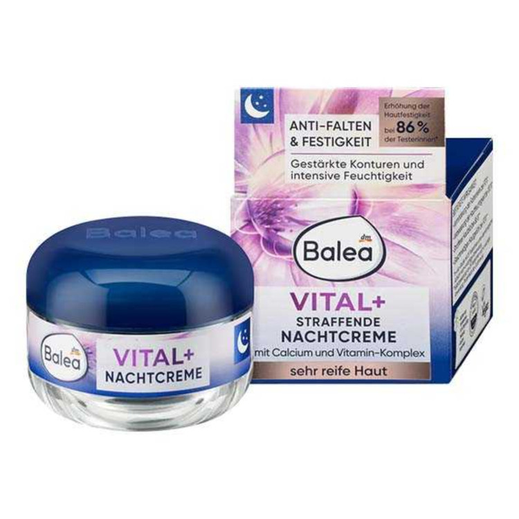 مراقبت ویژه برای پوستهای حساس. کرم شب Balea Vital + Firming به طور ویژه برای نیازهای پوستهای بسیار بالغ طراحی شده است. ترکیبی از یک کمپلکس ویتامین حاوی ویتامین E، ویتامین B3 و پروویتامین B5، بازسازی پوست شما را در طول شب تضمین میکند. همچنین عمق چین و چروکها را کاهش میدهد، از افتادگی جلوگیری میکند و پوست را سفت میکند. Balea پوستی به طور قابل توجهی صافتر را تضمین میکند.