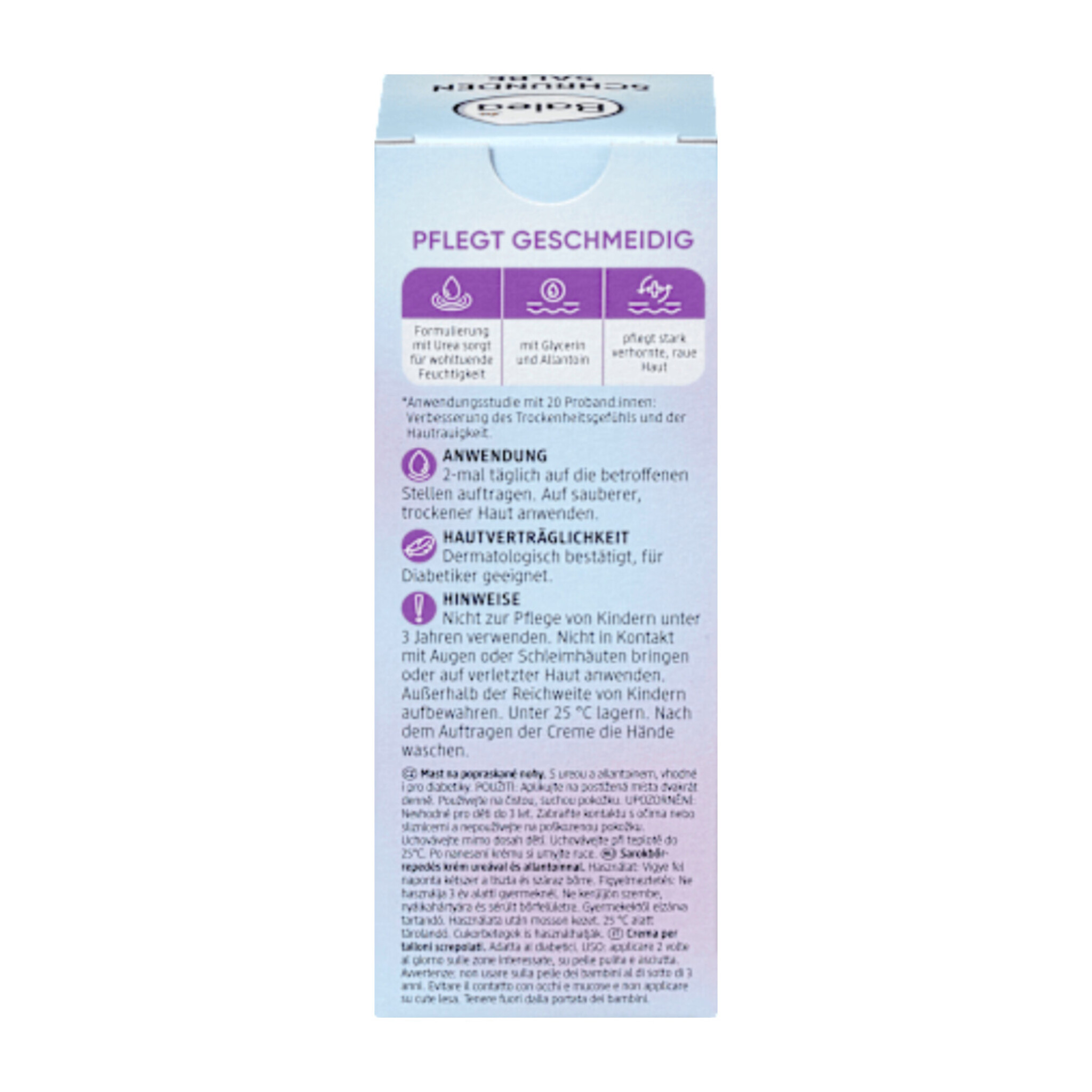 پماد پوست ترک خورده بالهآ: مراقبت بهینه از پا با اوره و آلانتوئین. این کرم غنی به ویژه برای پوستهای بسیار خشک، ترک خورده و زبر مناسب است. اوره رطوبت تسکیندهندهای را برای پاها فراهم میکند. این کرم همچنین پوست را نرم و لطیف میکند. این پماد همچنین برای افراد دیابتی مناسب است. برای پاهایی نرم و مراقبتشده و احساسی خوشایند.