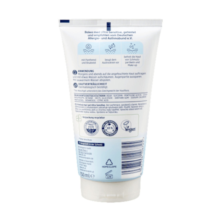 ژل پاککنندهی فوقالعاده حساس Balea MED فاقد عطر، پارابن و رنگ است و آن را برای پوستهای بسیار حساس ایدهآل میکند. این ژل پاککنندهی گیاهی به طور قابل اعتمادی بقایای آرایش و ناخالصیها را پاک میکند. به لطف فرمول ملایم آن با بیسابولول طبیعی و پروویتامین B5، صورت شما بیش از حد خشک نمیشود و کاملاً برای مراقبتهای بعدی پوست آماده میشود. این ژل پاککننده همچنین پوست شما را به طرز دلپذیری نرم میکند. برای پوستی به آرامی تمیز و چهرهای شاداب.