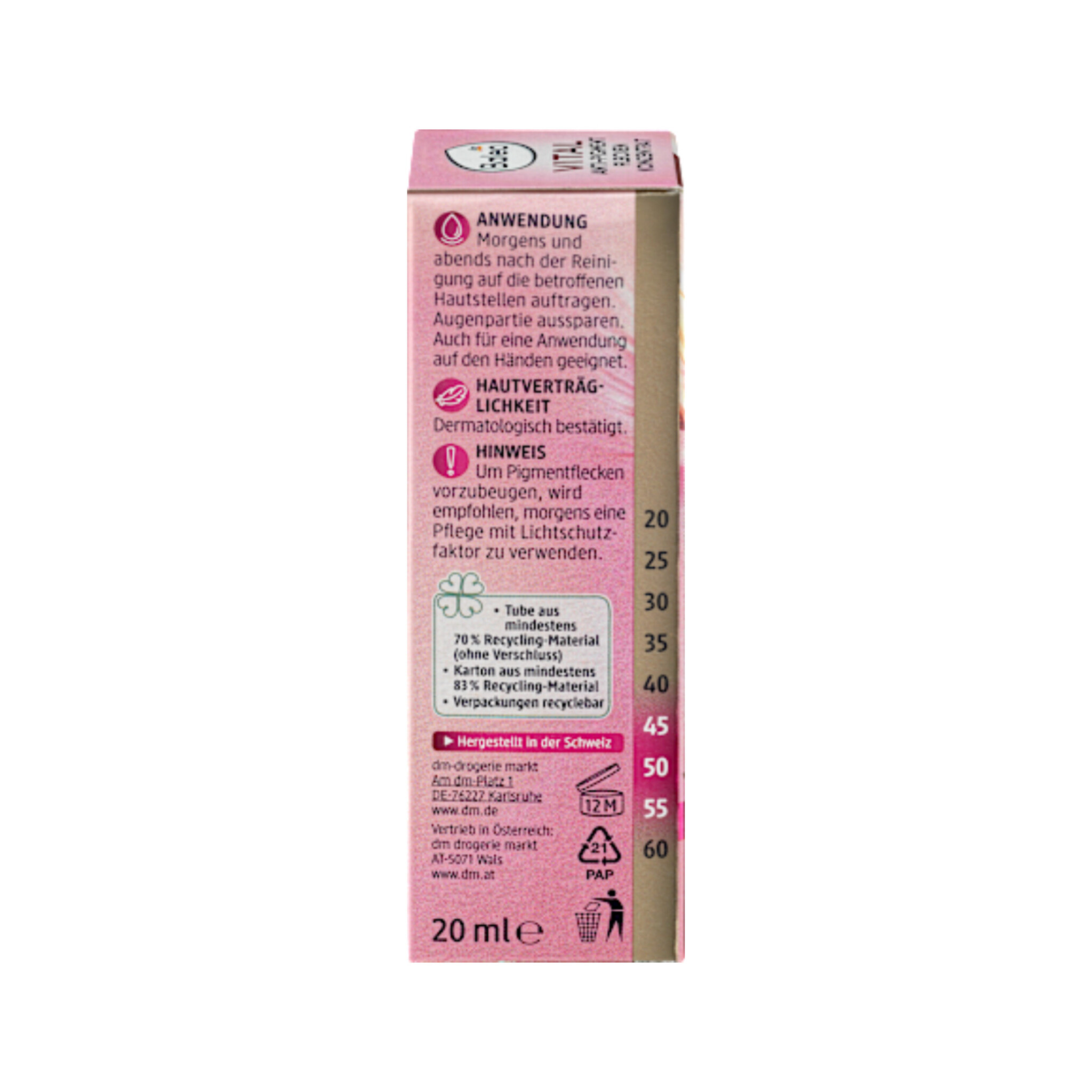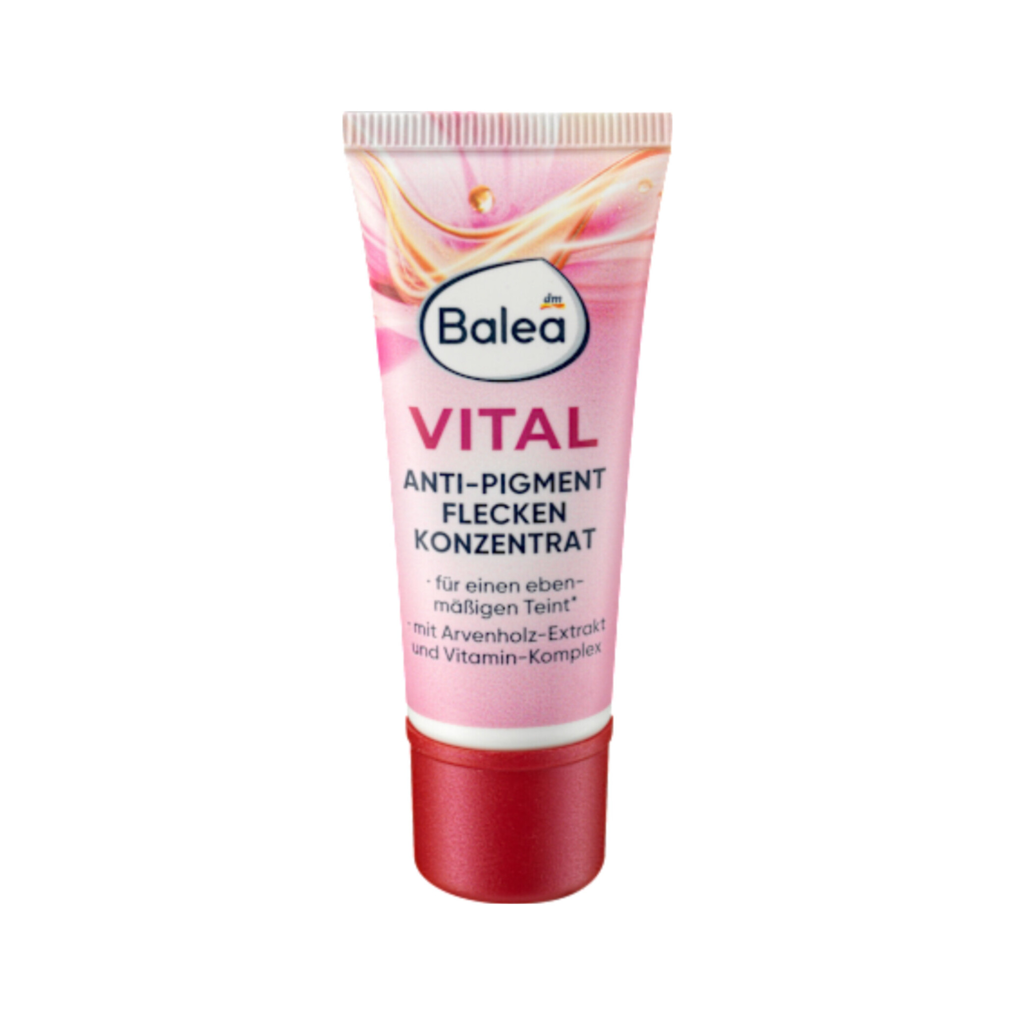 با کنسانتره ضد لک Vital ضد لک Balea، چهرهای یکدستتر داشته باشید. فرمول گیاهی این محصول با عصاره چوب کاج و یک کمپلکس ویتامین غنی شده است. Pinolumin™، عصاره غلیظ چوب کاج، میتواند شدت لکههای رنگدانهای و ناهمواریها را به طور قابل توجهی کاهش دهد. شدت رنگ لکهها نیز میتواند نرم و روشنتر شود. کمپلکس ویتامینهای E، B3 و B5 رطوبت زیادی به پوست میدهد و از آن در برابر رادیکالهای آزاد محافظت میکند. این کنسانتره همچنین میتواند علائم پیری پوست را خنثی کرده و چین و چروک را کاهش دهد.