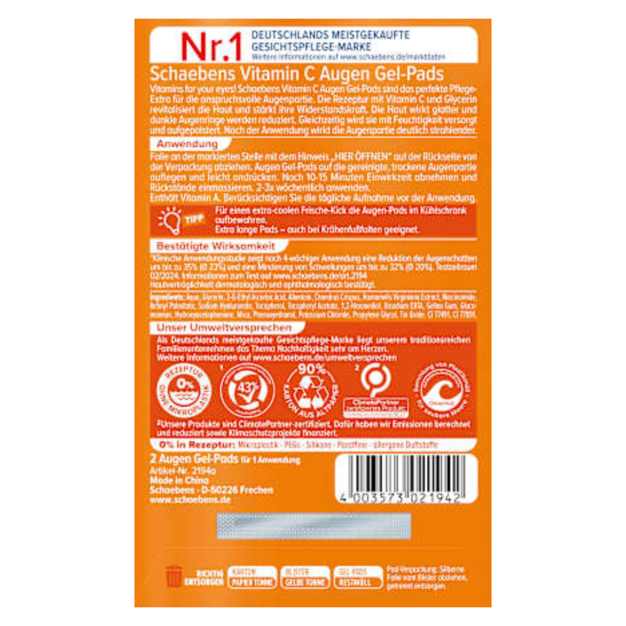 پدهای ژلی دور چشم ویتامین C Schaebens، مکمل ایدهآلی برای مراقبت از پوست ناحیه حساس دور چشم هستند. این پدها با فرمولی از ویتامین C و گلیسیرین، پوست را احیا و انعطافپذیری آن را افزایش میدهند. این پدها میتوانند به صاف شدن پوست و کاهش حلقههای تیره کمک کنند. در عین حال، پوست مرطوب و حجیم میشود. پس از استفاده، ناحیه دور چشم به طور قابل توجهی شادابتر، با طراوتتر و درخشانتر به نظر میرسد.