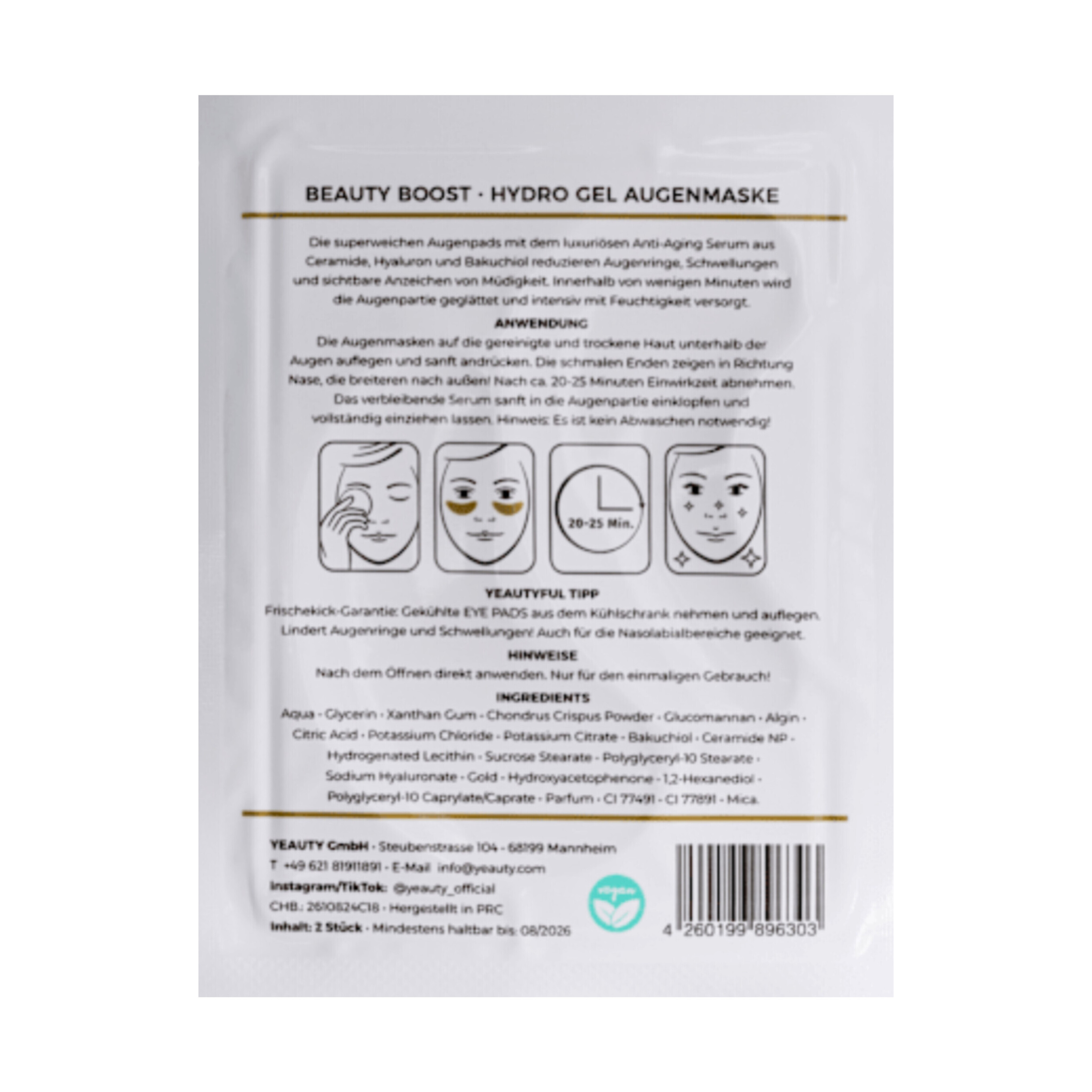 ماسک پد دور چشم YEAUTY Beauty Boost انتخابی ایدهآل برای مراقبتهای ویژه از ناحیه حساس چشم است. این پدهای هیدروژلی فوقالعاده نرم با سرم ضد پیری حاوی سرامیدها، اسید هیالورونیک و رتینول غنی شدهاند. آنها میتوانند به کاهش تیرگی و پف زیر چشم کمک کرده و علائم قابل مشاهده خستگی را تسکین دهند. در عرض چند دقیقه، پوست صاف و به شدت آبرسانی میشود. این پدها نه تنها برای ناحیه چشم مناسب هستند، بلکه میتوانند برای ناحیه نازولبیال نیز استفاده شوند. برای افزایش طراوت و شادابی، میتوانید پدها را قبل از استفاده در یخچال خنک کنید.