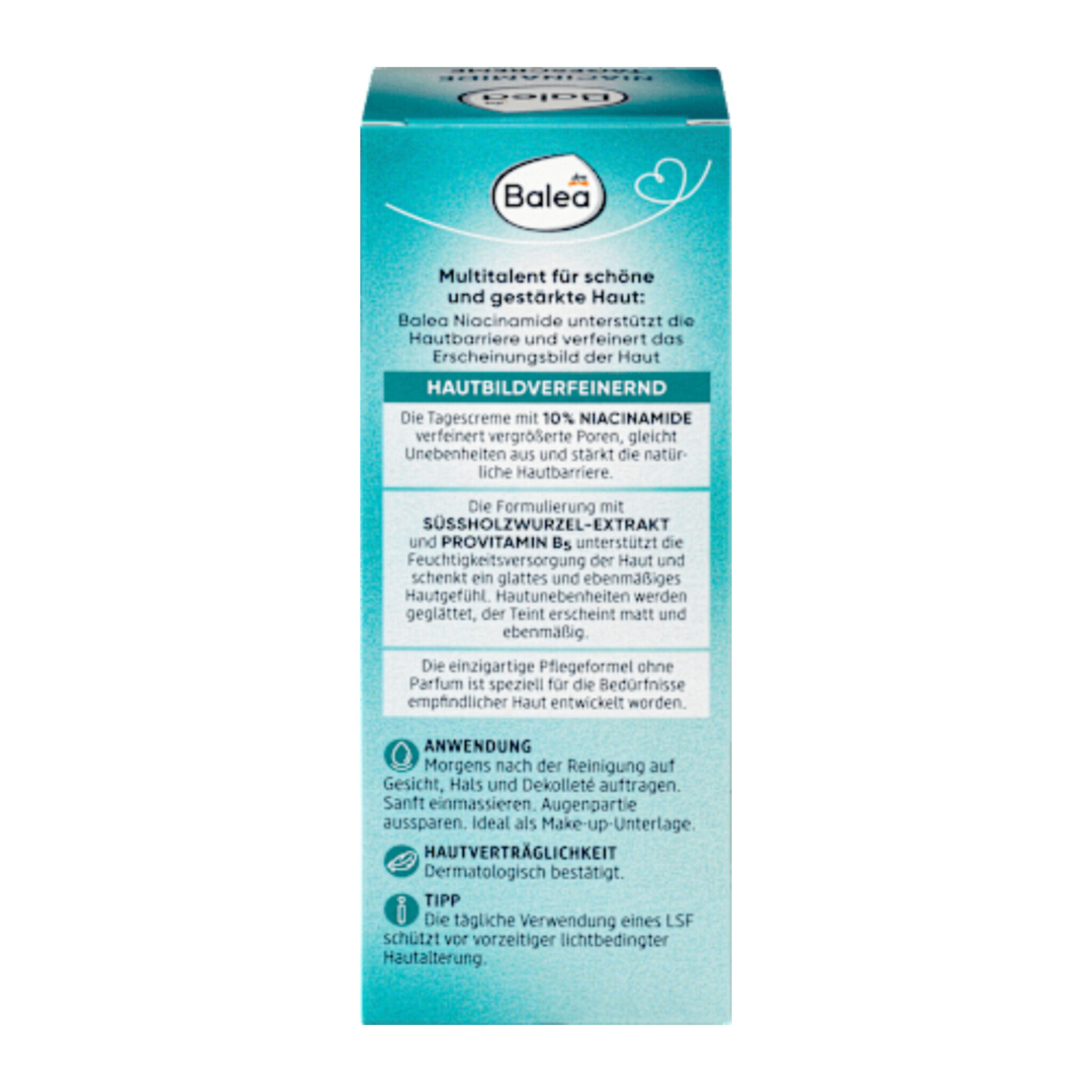 کرم روز بالهآ نیاسینامید با SPF 30 میتواند ظاهر پوست شما را بهبود بخشد و سطح پوست را نرمتر کند. همچنین میتواند اندازه منافذ را کاهش دهد. فرمول ارزشمند آن با 10٪ نیاسینامید، منافذ بزرگ شده را بهبود میبخشد، عیوب را صاف میکند و از سد طبیعی پوست شما پشتیبانی میکند. عصاره ریشه شیرین بیان و پروویتامین B از تامین رطوبت پوست پشتیبانی میکنند و به شما پوستی صاف و یکدست میدهند. عیوب پوست صاف میشوند و رنگ پوست مات و یکدست به نظر میرسد. این فرمول مراقبتی منحصر به فرد و بدون عطر به طور ویژه برای نیازهای پوست حساس طراحی شده است.
