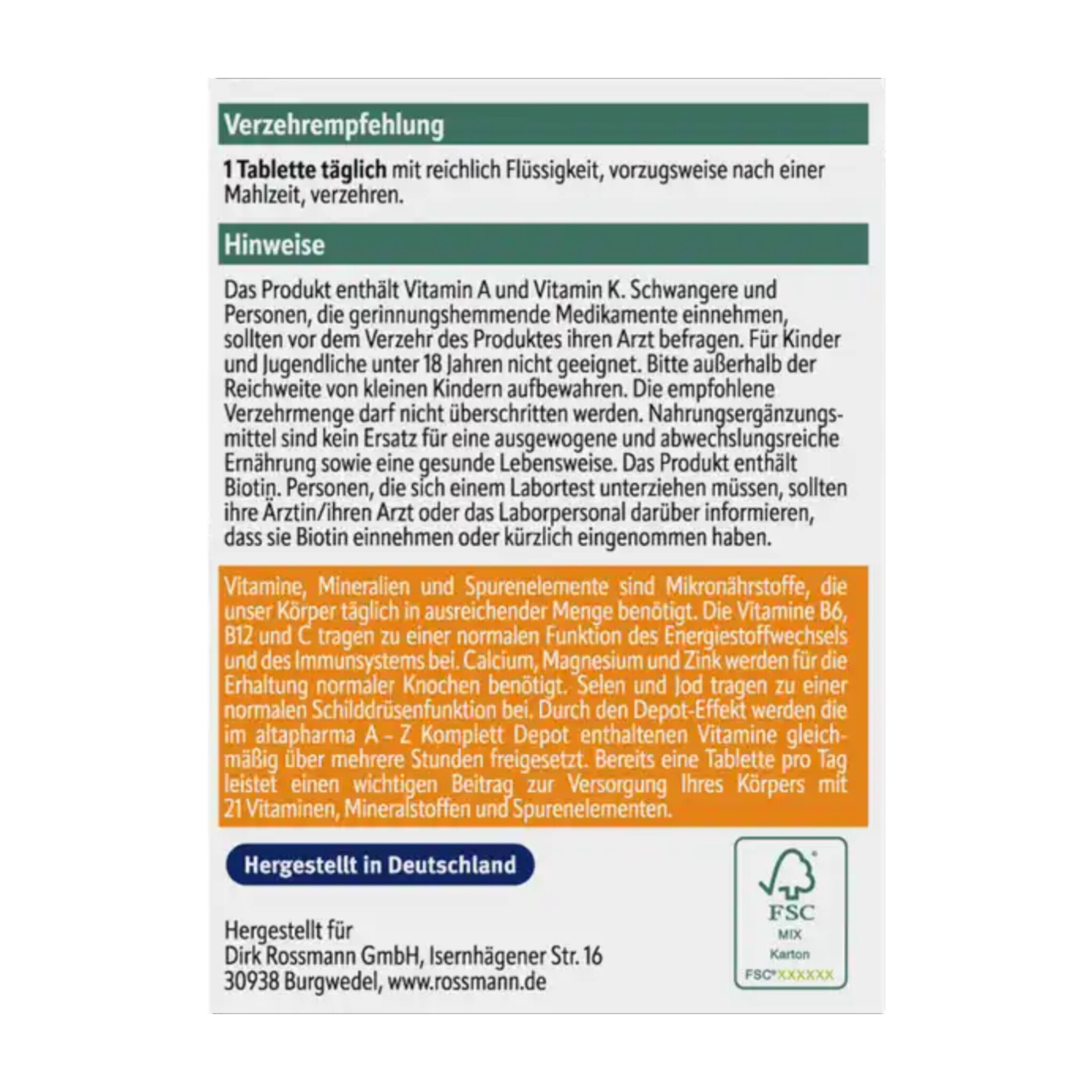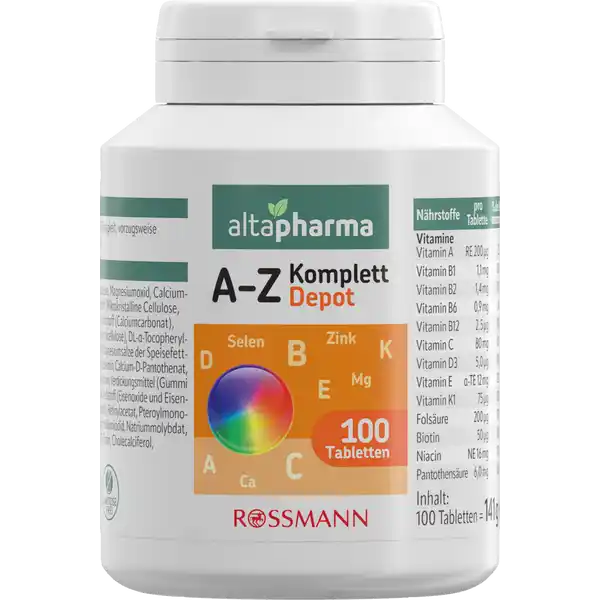 ویتامینها، مواد معدنی و عناصر کمیاب، ریزمغذیهایی هستند که بدن ما هر روز به مقدار کافی به آنها نیاز دارد. ویتامینهای B6، B12 و C به عملکرد طبیعی متابولیسم انرژی و سیستم ایمنی بدن کمک میکنند. کلسیم، منیزیم و روی برای حفظ سلامت استخوانها مورد نیاز هستند و سلنیوم و ید به عملکرد طبیعی تیروئید کمک میکنند. بنابراین، مطمئن شوید که رژیم غذایی متعادلی دارید. به لطف اثر ویژه دپو، ویتامینهای موجود در مولتی ویتامین+مینرال آلتافارما AZ Depot به طور یکنواخت طی چند ساعت آزاد میشوند. فقط یک قرص در روز، سهم مهمی در تأمین 21 ویتامین، مواد معدنی و عناصر کمیاب بدن شما دارد.