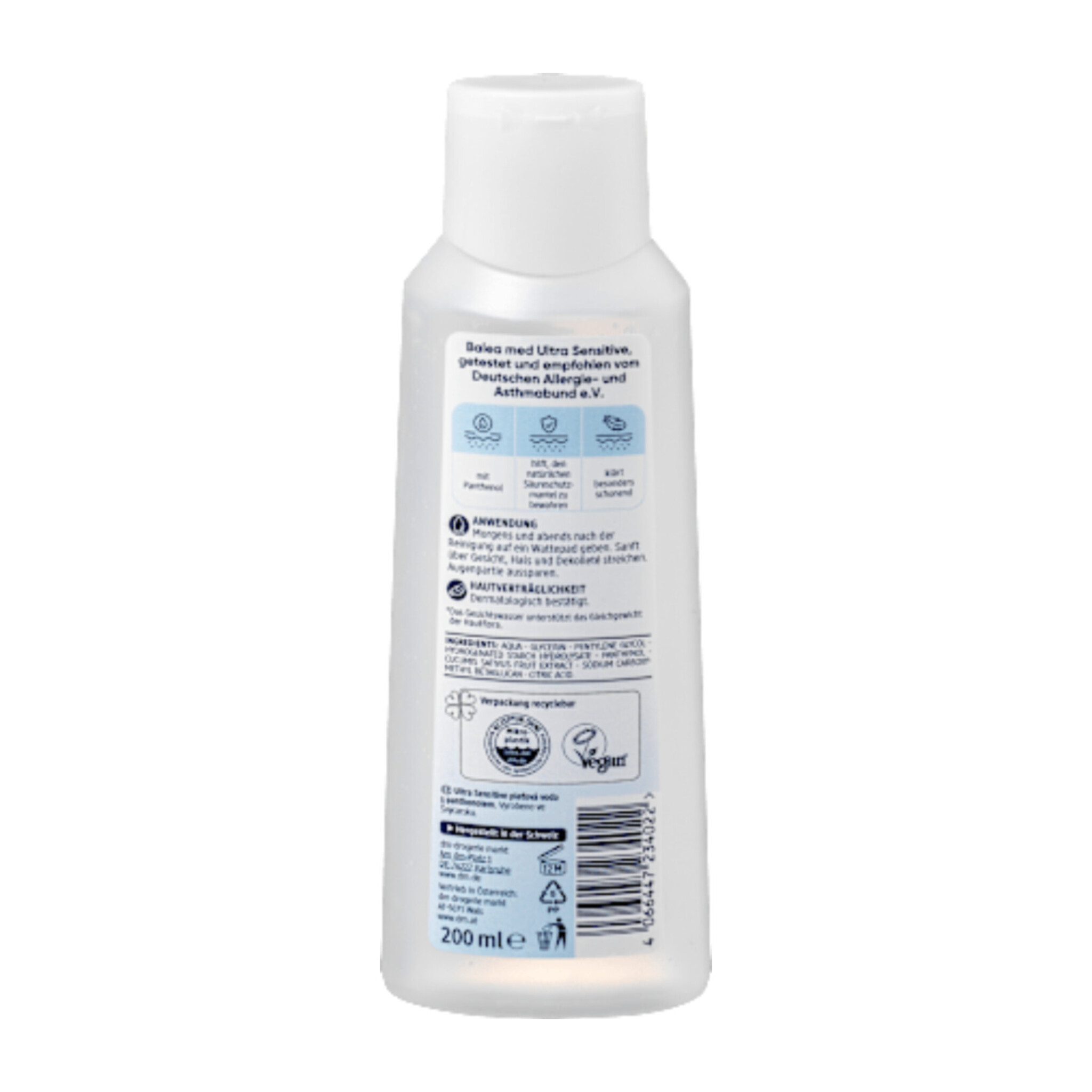 تونر صورت فوق حساس Balea med به آرامی پوست صورت شما را تمیز میکند. فرمول حاوی پانتنول به حفظ لایه محافظ طبیعی پوست شما کمک میکند. همچنین از تعادل طبیعی پوست پشتیبانی میکند. فرمول گیاهی آن فاقد میکروپلاستیک، عطر، پارابن، رنگ و الکل است.