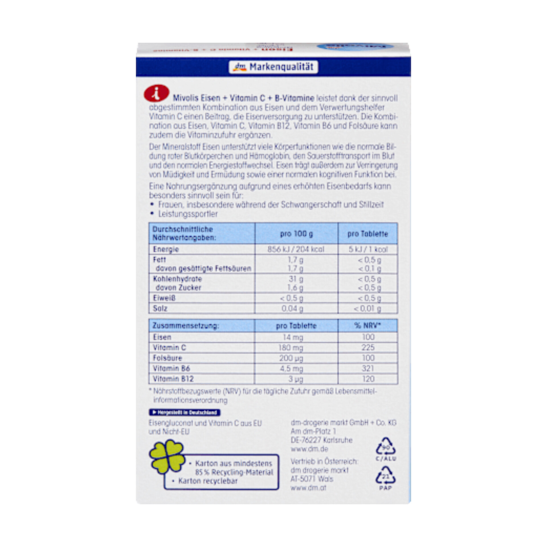 آهن میوولیس + ویتامین C + ویتامینهای گروه B، به لطف ترکیب متعادل آهن و ویتامین C که جذب را افزایش میدهد، به حفظ سطح آهن کمک میکند. ترکیب آهن، ویتامین C، ویتامین B12، ویتامین B6 و اسید فولیک همچنین میتواند ویتامین دریافتی شما را تکمیل کند. آهن معدنی از بسیاری از عملکردهای بدن مانند تشکیل طبیعی گلبولهای قرمز و هموگلوبین، انتقال اکسیژن در خون و متابولیسم طبیعی انرژی پشتیبانی میکند. آهن همچنین به کاهش خستگی و همچنین عملکرد شناختی طبیعی کمک میکند. مکمل آهن به دلیل افزایش نیاز به آهن میتواند به ویژه برای موارد زیر مفید باشد: - زنان، به ویژه در دوران بارداری و شیردهی، و برای ورزشکاران رقابتی.