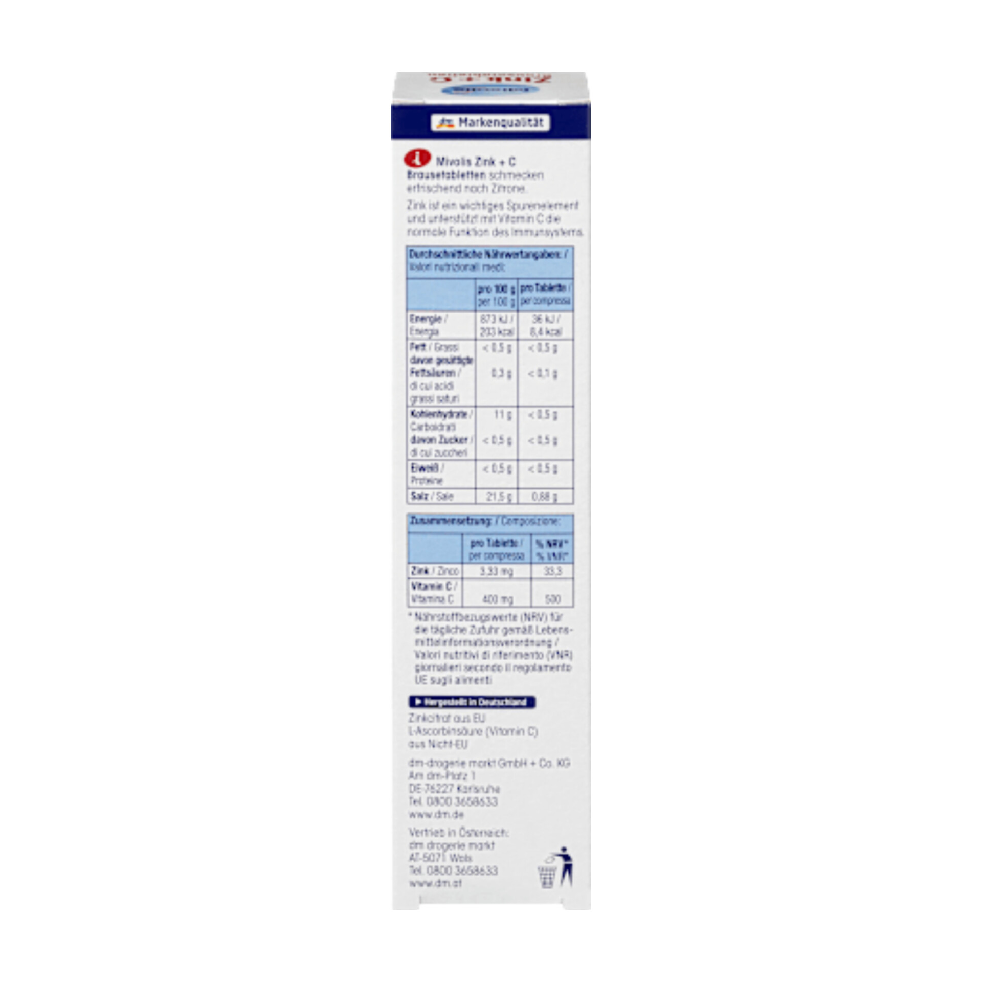 این مکمل غذایی میتواند سیستم ایمنی بدن را تقویت کند و طعم لیموی میوهای و طراوتبخشی دارد. قرصهای جوشان خوشمزه را میتوان در آب گرم یا سرد حل کرد و نوشید. بدن با این محصول، روی اضافی و ویتامین C ارزشمند خود را تأمین میکند. برای بهبود سلامت در فصل مرطوب و سرد ایدهآل است.