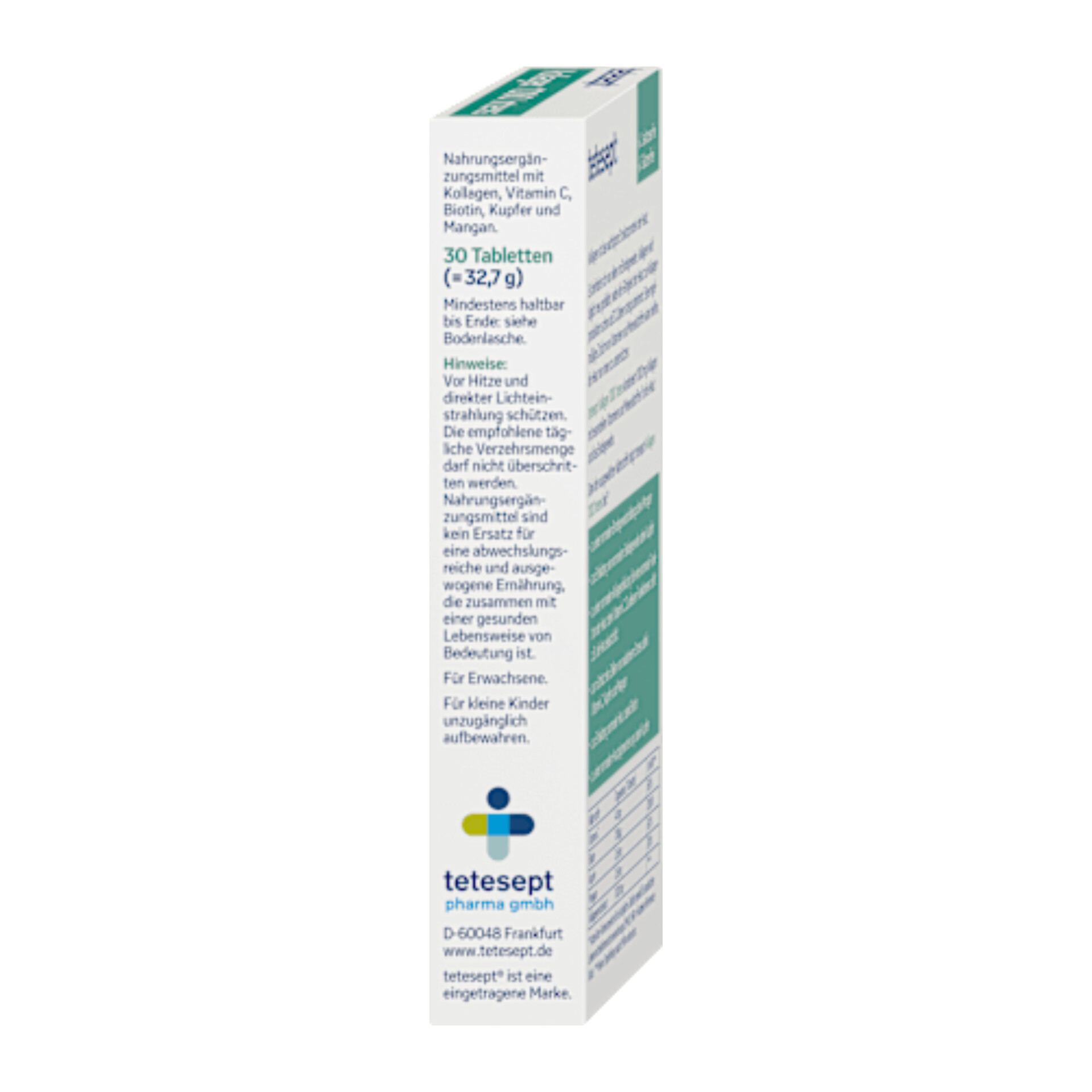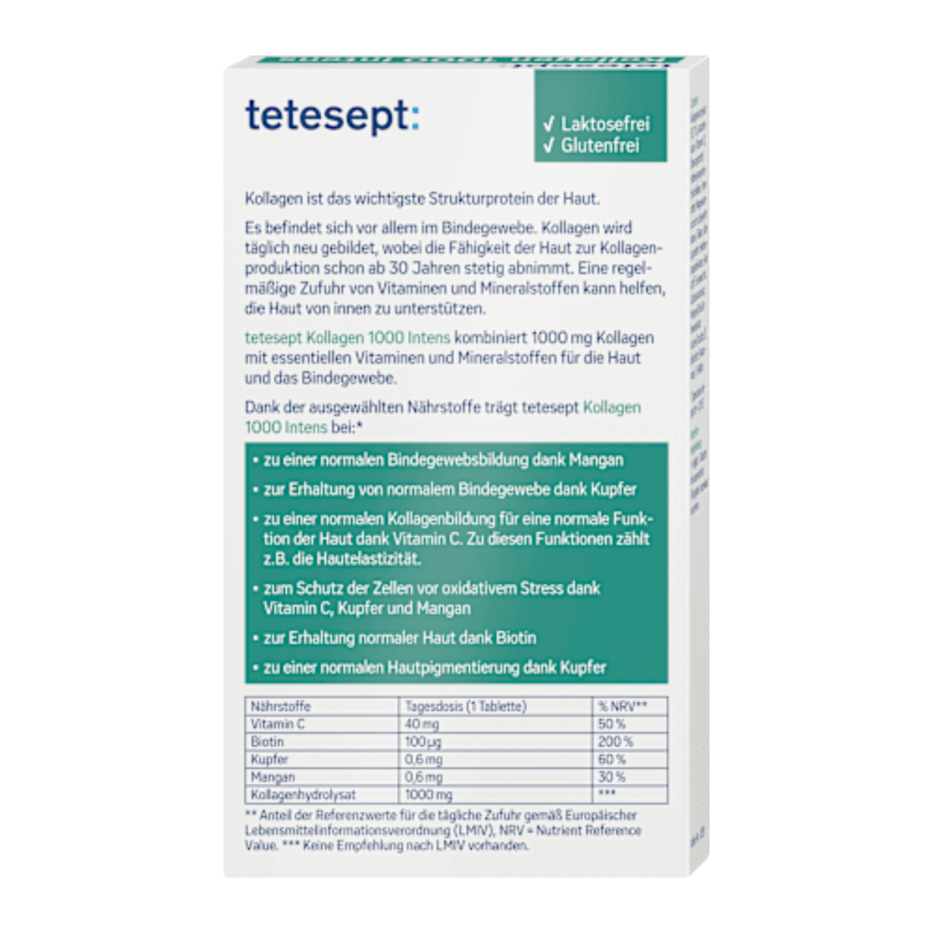کلاژن یک پروتئین ساختاری ضروری برای پوست انسان است. قرصهای کلاژن ۱۰۰۰ اینتنس از شرکت تتسپت میتوانند از تولید کلاژن بدن شما که از اوایل ۳۰ سالگی شروع به کاهش میکند، پشتیبانی کنند. این کپسولها با ارائه دوز بالایی از هیدرولیز کلاژن و ویتامینها و مواد معدنی ضروری، میتوانند به حفظ بافت همبند طبیعی کمک کنند. مواد فعال مانند بیوتین، ویتامین C، منگنز و مس میتوانند به پشتیبانی از پوست از درون کمک کنند. برای داشتن چهرهای خیرهکننده.