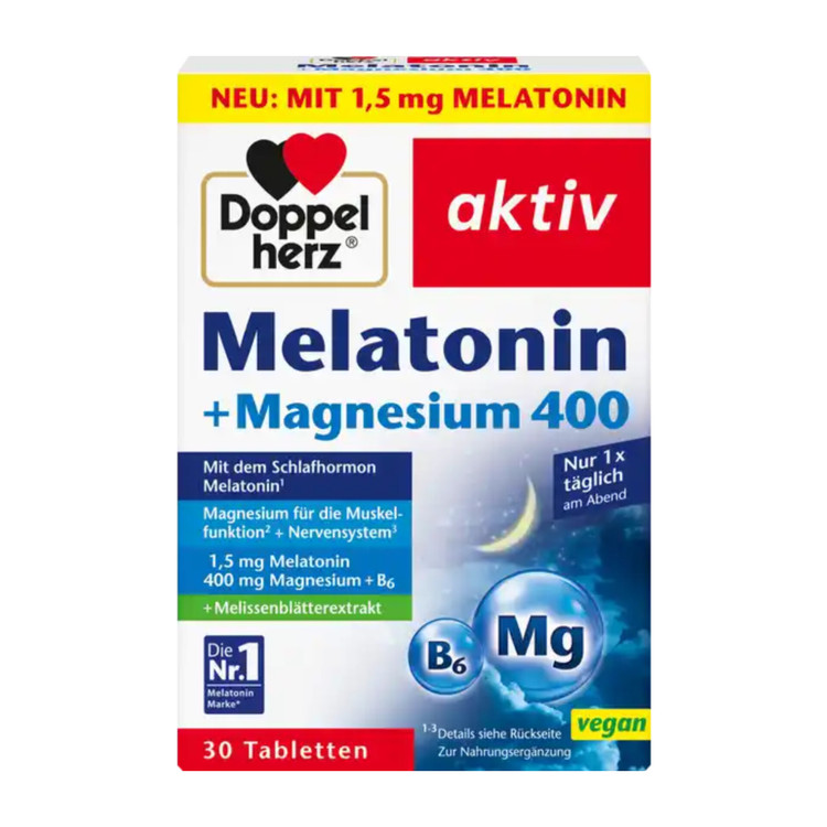 قرص Melatonin-ملاتونین+منیزیم۴۰۰-Doppel herz آلمان-۳۰ عدد