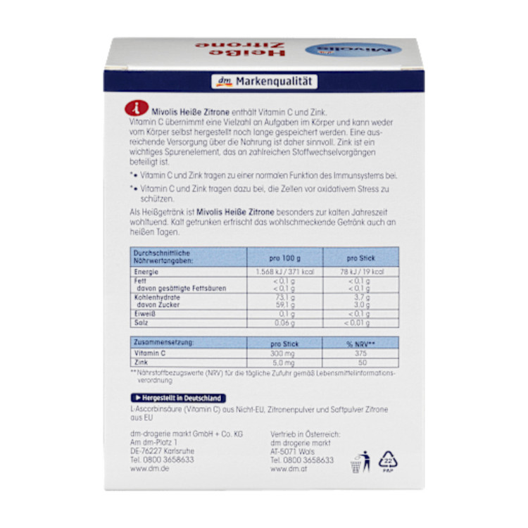 مکمل نوشیدنی لیمو ویتامین C میولیس-Mivolis آلمان ۲۰ عدد