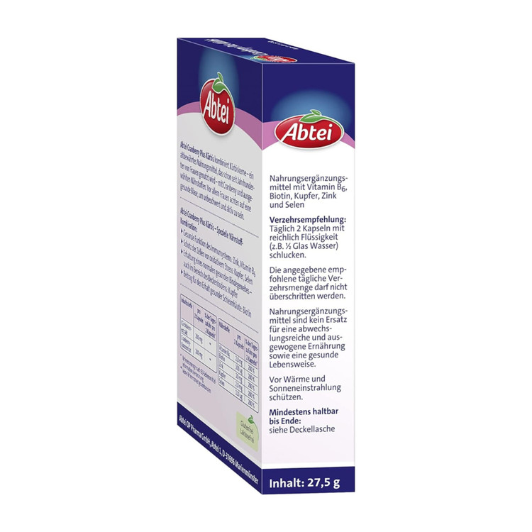 ترکیبی برای سلامت زنان: عصاره تخمه کدو حلوایی Abtei Cranberry Plus که قرنهاست خواص آن اثبات شده است، به همراه کرنبری و سایر مواد مغذی و ویتامینهای ارزشمند، در یک بسته قرار گرفته است.