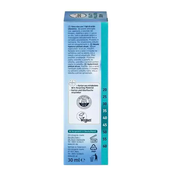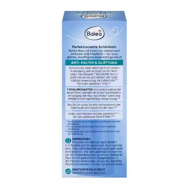 هیالورون Balea Beauty میتواند رنگ چهره را بهبود بخشد - پوستی صاف، سفت و یکدست را تضمین کند. این سرم بلافاصله پس از اولین استفاده، پوست را شاداب میکند و رطوبت آن را فراهم میکند*. بافت سبک آن به سرعت جذب میشود و با استفاده منظم، میتواند عمق چین و چروکها را کاهش دهد**. هفت نوع اسید هیالورونیک کاملاً با هم مطابقت دارند و رطوبت پوست را هم در کوتاه مدت* و هم در دراز مدت (با استفاده منظم)** بهینه میکنند. این سرم میتواند سفتی و خاصیت ارتجاعی پوست را بهبود بخشد**. خطوط و چین و چروکها را میتوان کاهش داد** - برای اثر درخشندگی بهینه*** و چهرهای صافتر**. *مطالعه درون تنی با 20 تستر 30 دقیقه پس از استفاده. **مطالعه درون تنی با 20 تستر پس از 4 هفته استفاده. ***ارزیابی شخصی توسط 50 تستر 30 دقیقه پس از استفاده.