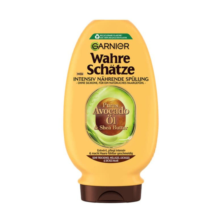 نرم کننده مغذی و قوی گارنیه مدل True Treasures حاوی روغن آووکادو و کره شی باتر، موهای خیلی خشک را به شدت تغذیه کرده و آنها را نرم و لطیف میکند.